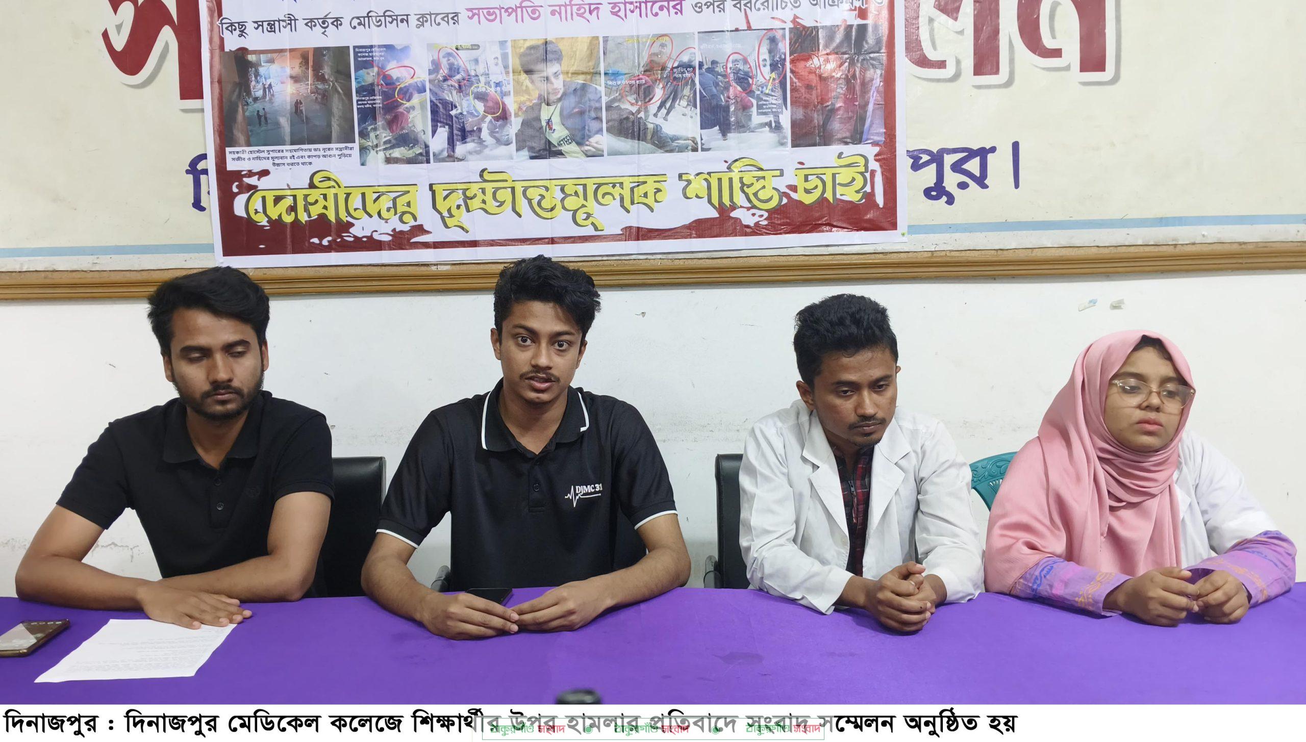 দিনাজপুর মেডিকেল কলেজে ছাত্র রাজনীতির নামে ক্যাম্পাসে একক আধিপত্য বিস্তারের অপচেষ্টা, শিক্ষার্থীকে পদত্যাগে বাধ্য করার হুমকি, দলবদ্ধ হামলা, নারী শিক্ষার্থীর ওপর আক্রমণের চেষ্টা এবং প্রমাণ নষ্ট করার অভিযোগ তুলে সংবাদ সম্মেলন করেছে মেডিসিন ক্লাবের সদস্যরা।