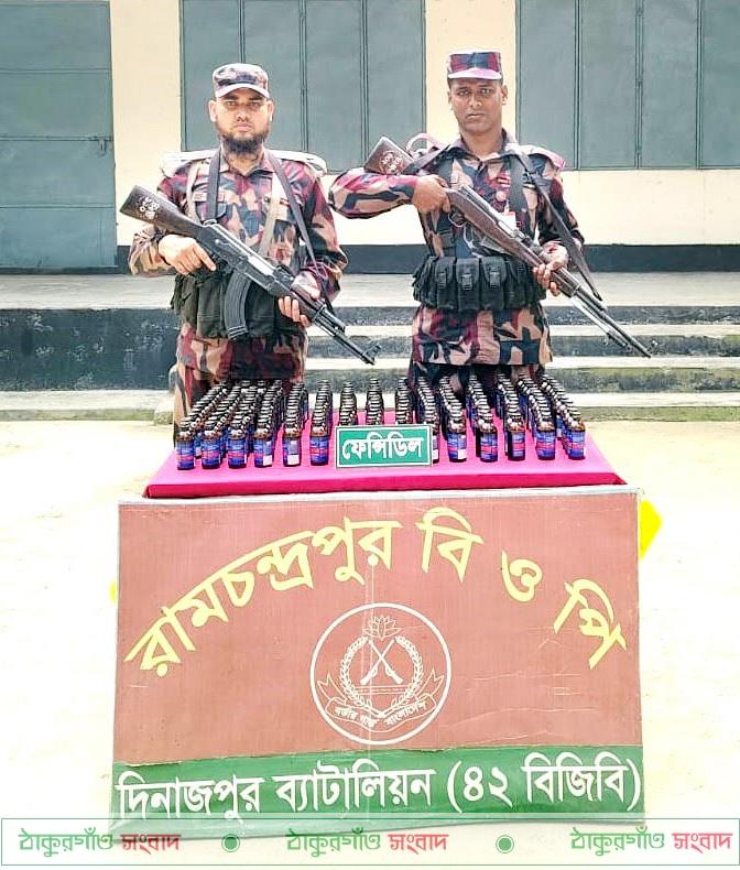দিনাজপুর ব্যাটালিয়ন (৪২ বিজিবি) এর বিশেষ অভিযানে দিনাজপুর জেলার বিরল সীমান্ত এলাকা থেকে বিপুল পরিমাণ ভারতীয় ফেন্সিডিল উদ্ধার করা হয়েছে।