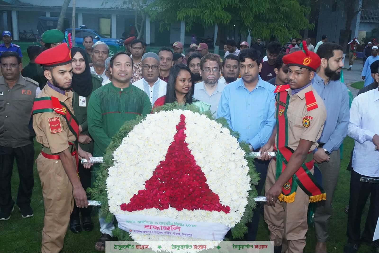 এ সময় বীরগঞ্জ ভূমি অফিস, বীরগঞ্জ পৌরসভা, বীরগঞ্জ থানা, উপজেলা স্বাস্থ্য কমপ্লে·সহ বিভিন্ন সরকারি দপ্তর, রাজনৈতিক দল, অঙ্গসংগঠন, শিক্ষা প্রতিষ্ঠান এবং বেসরকারি সংস্থার পক্ষ থেকেও পর্যায়ক্রমে পুষ্পস্তবক অর্পণ করা হয়।