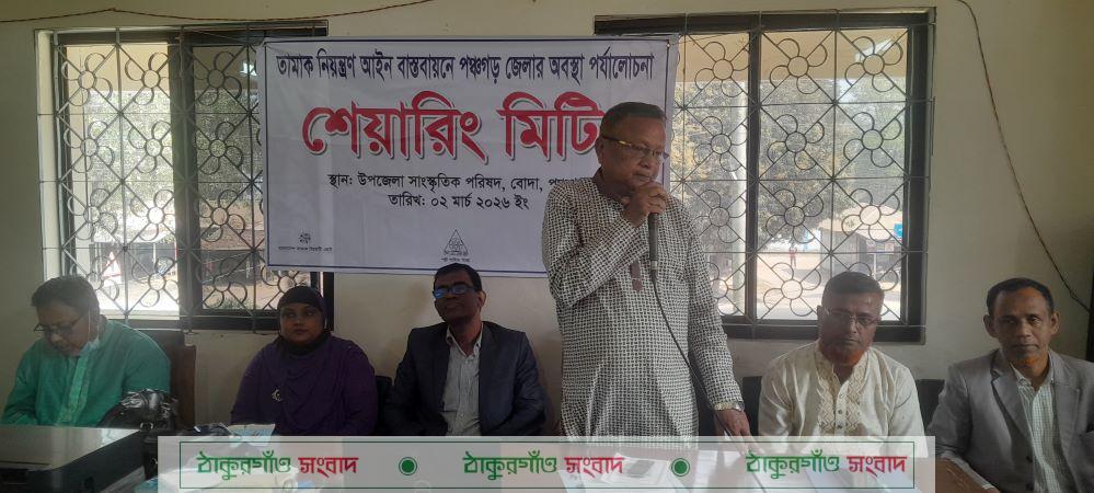 বোদা,পঞ্চগড় প্রতিনিধি॥জনস্বাস্থ্য সুরক্ষায় প্রণীত তামাক নিয়ন্ত্রণ আইন বাস্তবায়নে পঞ্চগড় জেলার অবস্থা পর্যালোচনা শীর্ষক এক শেয়ারিং মিটিং সোমবার (২ মার্চ) দুপুরে পঞ্চগড়ের বোদা উপজেলা সাংস্কৃতিক পরিষদের হলরুমে অনুষ্ঠিত হয়।বাংলাদেশ তামাক বিরোধী জোট ও ওয়ার্ক ফর বেটার বাংলাদেশ এর সহযোগীতায় স্থানিয় স্বেচ্ছাসেবী সংগঠন পল্লী সাহিত্য সংস্থা এই মিটিংয়ের আয়োজন করে। সংস্থার সভাপতি আব্দুস সামাদ তারার সভাপতিত্বে অনুষ্ঠিত শেয়ারিং মিটিংয়ে বক্তব্য রাখেন পঞ্চগড় সিভিল সার্জন কার্যালয়ের সিনিয়র স্বাস্থ্য ও শিক্ষা কর্মকর্তা জিয়া উদ্দিন,পল্লী সাহিত্য সংস্থার নির্বাহী পরিচালক হারুন অর রশিদ,সুচনার নির্বাহী পরিচালক সপিকুল আলম দোলন,দৃষ্টিদানের নির্বাহী পরিচালক মনোরঞ্জন সরকার,দেশ উন্নয়ন সংস্থার নির্বাহী পরিচালক জহিরুল ইসলাম,ডেমক্রেসি ওয়াচের জেলা সমন্বয়কারী নুরুল ইসলাম নাহিদ,এম কে পির মিজানুর রহমান.সাংবাদিক নজরুল ইসলাম ও আব্দুল মালেক।সভায় বক্তারা বলেন,তামাক ব্যবহার নিয়ন্ত্রণে কার্যকর পদক্ষেপ গ্রহন করা না হলে পঞ্চগড়ে এর আরো বিস্তার ঘটবে এতে মানুষের স্বাস্থ্য ঝুকি বাড়বে। বক্তরা তামাক নিয়ন্ত্রণে এখনই সমন্বিত ভাবে প্রয়োজনীয় পদক্ষেপ গ্রহন করে পঞ্চগড় জেলাকে তামাক মুক্ত জেলা ঘোষনার দাবী জানান। অনুষ্ঠিত শেয়ারিং মিটিংয়ে সরকারি,বেসরকারি কর্মকর্তা,নারী প্রতিনিধি,সমাজ কর্মী,এলাকার গন্যমান্য ব্যক্তিবর্গ,সুধি বৃন্দ,সাংস্কৃতিক কর্মী ও সাংবাদিকগণ অংশ নেন।