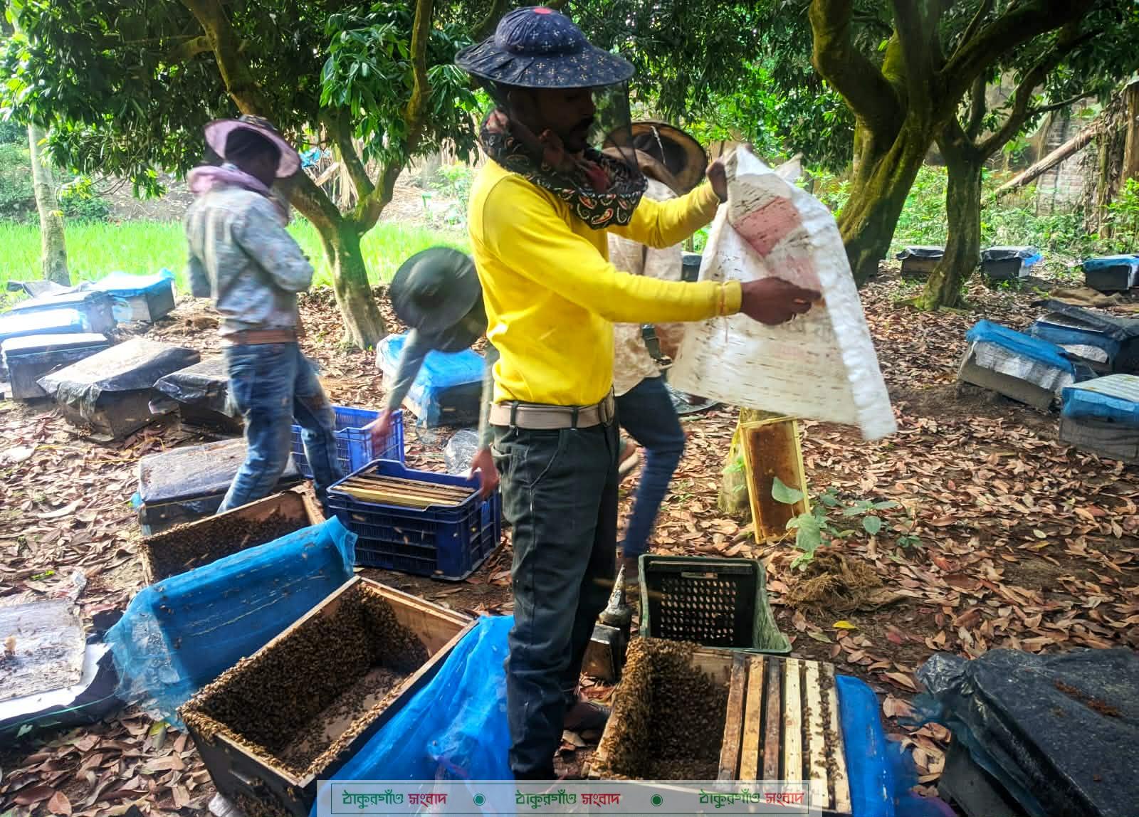 সিরাজগঞ্জ থেকে মধু সংগ্রহ আসা একটি মৌচাষ খামারে চারজন শ্রমিক একসঙ্গে কাজ করে মধু সংগ্রহ করছেন তারা। মৌয়ালর মো রাকিব ইসলাম জানান, চলতি মৌসুমে দুই দফায় মধু সংগ্রহ করা হয়েছে। প্রতিবারই উল্লেখযোগ্য পরিমাণ মধু পাওয়া গেছে।