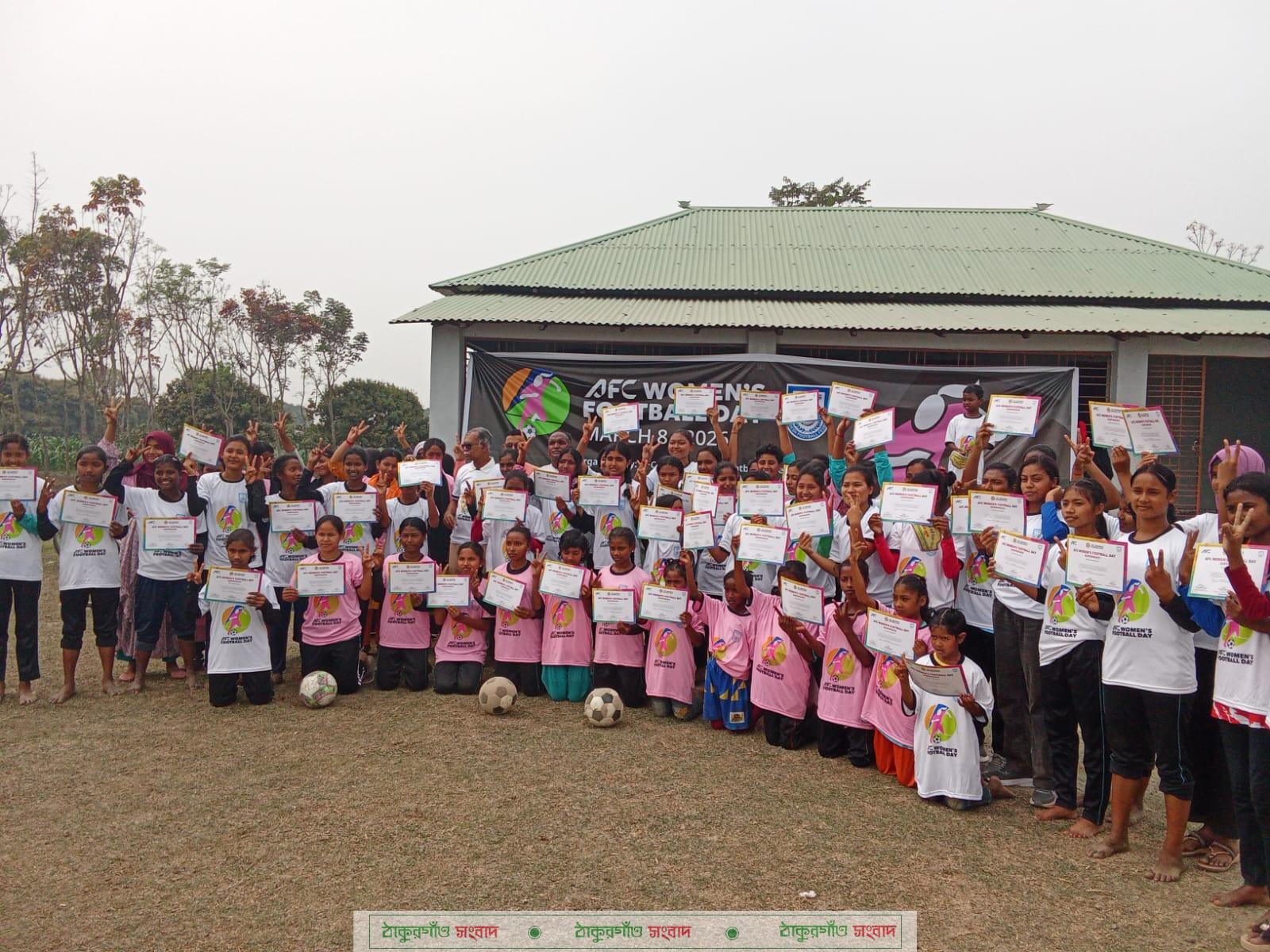 রাণীশংকৈল (ঠাকুরগাঁও) প্রতিনিধিঃ আন্তর্জাতিক নারী দিবস পালন উপলক্ষে ৮মার্চ রোববার এশিয়ায় নারী ফুটবলকে আরো জনপ্রিয় ও অংশগ্রহনমূলক করে তুলতে (এএফসি) ঘোষিত ফুটবল ডে ঠাকুরগাঁওয়ের রাণীশংকৈল রাঙাটুঙ্গী ইউনাইটেড ফুটবল একাডেমি মাঠে বর্ণাঢ্য বাইসাইকেল র্যালী’র মধ্য দিয়ে নারী ফুটবল উৎসব পালিত হয়। উপজেলার রাঙাটুঙ্গী প্রমিলা ফুটবল মাঠে ইএসডিও এডুকোর বে-সরকারি সংস্থার আয়োজনে বাইসাইকেল র্যালি, অনুপ্রেরণামূলক আলোচনা সভা, ১৫০ জন নারী খেলোয়াড়ের মাঝে টি-শার্ট ও সনদপত্র বিতরণ করা হয়। রাঙাটুঙ্গী ইউনাইটেড ফুটবল একাডেমির প্রতিষ্ঠাতা ক্রিড়াবিদ তাজুল ইসলাম জানায়- প্রত্যন্ত অঞ্চল থেকে উঠে আসা নারী ফুটবলাররা আজ জাতীয় পর্যায়ে যে অবদান রাখছে ভূলবার মতো নয়। বিদেশের মাটিতে খেলে এলাকার মুখ উজ্জল করছে। এ সময় উপস্থিত ছিলেন একাডেমির ফুটবল প্রশিক্ষক গোপাল মুর্মু সুগা, ইএসডিও এডুকোর পিসি শরিফুল ইসলাম, প্রেসক্লাব সাবেক সভাপতি মোবারক আলীসহ স্থানীয় গণ্যমান্য ব্যক্তি ও নারী খেলোয়াররা।