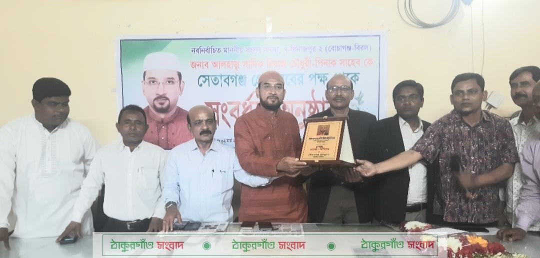 মোঃ শামসুল আলম, বোচাগঞ্জ (দিনাজপুর) প্রতিনিধি\ দিনাজপুর-২ (বিরল বোচাগঞ্জ) আসনের নবনির্বাচিত সংসদ সদস্য আলহাজ¦ সাদিক রিয়াজ চৌধুরী পিনাককে সেতাকগঞ্জ প্রেসক্লাবের পক্ষ থেকে ২রা মার্চ সোমবার সংবর্ধনা প্রদান করা হয়েছে। দুপুর ১২টায় প্রেসক্লাব কার্যালয়ে প্রেসক্লাবের আহবায়ক আব্দুস সাত্তার এর সভাপতিত্বে অনুষ্ঠিত সংবর্ধনা অনুষ্ঠানে প্রধান অতিথির বক্তব্যে নবনির্বাচিত সংসদ সদস্য আলহাজ¦ সাদিক রিয়াজ চৌধুরী পিনাক সাংবাদিকদের উদ্দেশ্যে বলেন, আপনারা কিন্তু এই এলাকার দর্পন হিসেবে বিবেচিত হবেন, যদি আপনারা লোভ লালসা এবং ব্যাক্তি স্বার্থের উর্দ্ধে উঠে এলাকার অসংগতি, অনিয়ম, দুর্নীতি, মাদক, চাঁদাবাজির মত অপরাধ গুলো নির্দ্বিধায় তুলে ধরেন। অপরাধী আমার দলের নেতা বা কর্মি যে হউক আপনারা তুলে ধরবেন। আমি আপনাদের সাথে আছি ইনশাল্লাহ। সংসদ সদস্য বলেন, পরিবর্তন আমাদের করতেই হবে। আমরা বার বার পরিবর্তনের কথা বলি কিন্তু আমরা পরিবর্ত হইনা বা পরিবর্তন করতে পারি না। এবার পরিবর্তন নিশ্চিত করতে চাই। এই পরিবর্তন কিন্তু আমি একা করতে পারবো না। আপনারা যারা সাংবাদিক আছেন, আমাকে সব ধরণের তথ্য উপাত্ত দিয়ে সহযোগিতা করবেন। আমি নির্বাচনের পূর্বে বলেছিলাম, নির্বাচিত হলে বিরল ও বোচাগঞ্জ দুই উপজেলাকে মাদক, ধন্ত্রাস ও চাঁদাবাজ মুক্ত উপজেলা হিসেবে গড়ে তুলবো। এই সব ব্যাপারে আপনারা প্রশাসনকে যেমন জানাবেন ঠিক তেমনী ভাবে আমাকেউ জানাবেন। সবাইকে পরিবর্তন হতে হবে। আমি একা পরিবর্তন হলে কিন্তু এগুলো পরিবর্তন হবে না। তাই যার যার অবস্থান থেকে আমরা সবাই যদি ঐক্যবদ্ধ ভাবে কাজ করি তাহলে এগুলো বন্ধ করা কঠিন হবে না। শুধুমাত্র আন্তরিকতা দরকার। আমার লক্ষ্য এবং উদ্দেশ্য হচ্ছে কর্ম দিয়ে আমরা প্রমান করবো বিগত দিনে ও বর্তমানে কেমন কার্যক্রম হচ্ছে। উন্নয়ন হচ্ছে কি না। এগুলো অবশ্যই আমি করতে চাই। এসব বিষয়ে আপনারা আমাকে সহযোগিতা করবেন। প্রেসক্লাবের সাবেক সাধারণ সম্পাদক সাজ্জাদুল আযম এর সঞ্চালনায় এছাড়া সংবর্ধনা অনুষ্ঠানে উপজেলা বিএনপির সাধারণ সম্পাদক সফিকুল আলম, প্রেসক্লাবের সদস্য সচিব মোঃ শামসুল আলম বক্তব্য রাখেন। এসময় উপজেলা বিএনপির সভাপতি মোঃ আবুল কাসেম, সাংগঠনিক সম্পাদক যথাক্রমে মোঃ জামাল উদ্দীন, মোঃ হারেসুল ইসলাম, সেতাবগঞ্জ পৌর বিএনপির ভারপ্রাপ্ত সাধারণ সম্পাদক সাদরুল পারভেজসহ বিএনপির বিভিন্ন পর্যায়ের নেতাকর্মী উপস্থিত ছিলেন। আলোচনা সভার পূর্বে উপজেলা জিয়া সাইবার ফোর্স ও ইসলামী ব্যাংক লিঃ এর পক্ষ থেকে নবনির্বাচিত সংসদ সদস্যকে ফুলেল সংবর্ধনা প্রদান করা হয়।