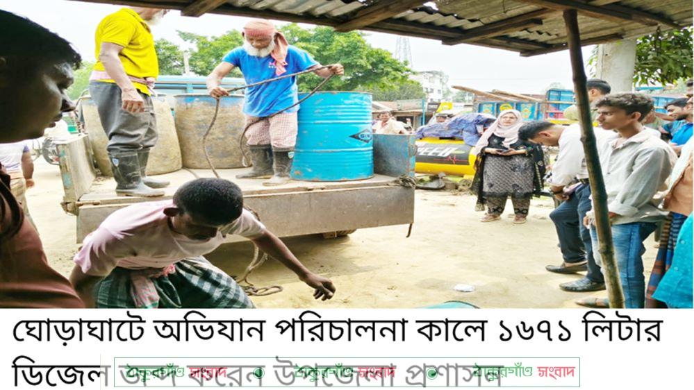এসময় সেখান থেকে ১৬৭১ লিটার ডিজেল জব্দ করা হয়। এদিকে অভিযানের খবর পেয়ে ব্যবসায়ী আব্দুস সালাম পালিয়ে যায়। অভিযান পরিচালনা কালে পুলিশ ও ফায়ার সার্ভিসের একটি চৌকস দল উপস্থিত ছিলেন।