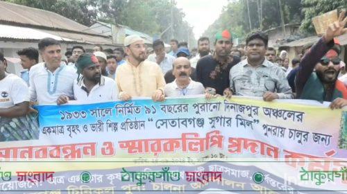 মোঃ শামসুল আলম, বোচাগঞ্জ (দিনাজপুর) প্রতিনিধি\ দিনাজপুর জেলার একমাত্র ভারী শিল্প প্রতিষ্ঠান সেতাবগঞ্জ চিনিকল পূনরায় চালু করার দাবিতে মঙ্গলবার চিনিকলের প্রধান ফটকের সামনে মানববন্ধন ও পথ সভা করেছে শ্রমিক কর্মচারী,…