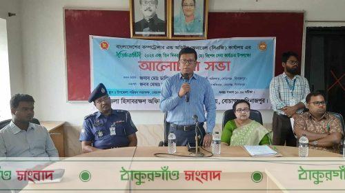 ঠাকুরগাঁও জেলার পীরগঞ্জ প্রেসক্লাব প্রতিষ্ঠার ৪৫ বছরে পদার্পন উপলক্ষে প্রেসক্লাবের পক্ষ থেকে “দেশ ও জাতি গঠনে গণমাধ্যমের ভূমিকা” বিষয়ক রচনা প্রতিযোগিতার আয়োজন করা হয়েছে। প্রতিযোগিতায় মাধ্যমিক স্কুল পর্যায়ে ক- গ্রুপ (৬ষ্ট থেকে ৮ম শ্রেনি), খ- গ্রুপ (নবম থেকে এসএসসি পরীক্ষার্থী) এবং গ- গ্রুপ কলেজ পর্যায় (একাদশ হতে স্নাতক) শিক্ষার্থীরা অংশ নিতে পারবেন। উপরোক্ত বিষয়ে ক এবং খ- গ্রুপের প্রতিযোগিরা ১০০০ (এক হাজার) শব্দের মধ্যে এবং গ-গ্রুপের প্রতিযোগিরা ১৫০০ (এক হাজার পাঁচশত) শব্দের মধ্যে রচনা স্বহস্তে লিখে (নাম, শ্রেনি, রোল নম্বর,শিক্ষা প্রতিষ্ঠানের নাম ও মোবাইল নম্বর উল্লেখ করতে হবে) আগামী ২৩/০৭/২২ তারিখের মধ্যে প্রেসক্লাবে রক্ষিত বাক্সে জমা দিতে পারবেন। প্রাপ্ত লেখা হতে যাচাই-বাছাই করে ক, খ এবং গ- গ্রুপ হতে তিন জন করে নির্বাচিত প্রতিযোগিকে পুরস্কার প্রদান করা হবে। মূল্যায়ন কমিটির সিদ্ধান্তই চুড়ান্ত বলে বিবেচিত হবে।