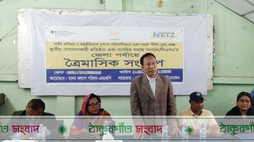 ঠাকুরগাঁও জেলায় শারদীয় দুর্গাপূজা উপলক্ষে সনাতন ধর্মালম্বী অসহায় ও দুস্থদের মাঝে শাড়ি ও লুঙ্গি বিতরণ করা হয়। ৪ অক্টোবর মঙ্গলবার সদর থানার হলরুমে এ বিতরণ অনুষ্ঠিত হয়। ঠাকুরগাঁও সদর থানার আয়োজনে বিতরণ অনুষ্ঠানে বক্তব্য দেন প্রধান অতিথি ঠাকুরগাঁও জেলা পুলিশ সুপার মোহাম্মদ জাহাঙ্গীর হোসেন। অন্যান্যের মধ্যে বক্তব্য দেন অতিরিক্ত পুলিশ সুপার (সদর সার্কেল) সুলতানা রাজিয়া, সদর থানার অফিসার ইনচার্জ মো: কামাল হোসেন, ঠাকুরগাঁও প্রেস ক্লাবের সভাপতি মনসুর আলী প্রমুখ। অনুষ্ঠানে শতাধিক অসহায় ও দুস্থ নারী পুরুষের মাঝে শাড়ি ও লুঙ্গি বিতরণ করা হয়। এ সময় ঠাকুরগাঁও জেলা পুলিশের বিভিন্ন কর্মকর্তা, সদস্য ও সুবিধাভোগীগণ উপস্থিত ছিলেন।
