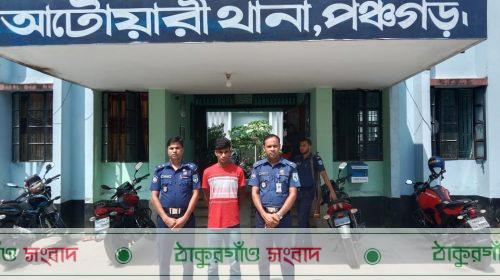মোঃ মজিবর রহমান শেখ, ঠাকুরগাঁও জেলা প্রতিনিধি,,ঠাকুরগাঁও জেলা পুলিশের অভিযানে ট্যাপেন্টাডোল ট্যাবলেটসহ ৩ মাদক ব্যবসায়িকে গ্রেফতার করা হয়। রোববার এ ঘটনায় সদর থানার এসআই (নি:) মো: আল-আমিন সরকার বাদী হয়ে একটি মামলা দায়ের করেন। মামলার বিবরনে জানা যায়, ভোর রাতে সদর থানা পুলিশের একটি টিম শহরের সত্যপীর ব্রীজে অবস্থান করছিল। এ টিমের সদস্যরা গোপন সংবাদ পান যে, পৌর শহরের মুন্সিপাড়া এলাকায় মাদকদ্রব্য কেনা-বেচা চলছে। পরক্ষনেই পুলিশের টিমটি ঘটনাস্থলে পৌছালে তাদের উপস্থিতি টের পেয়ে কয়েকজন যুবক পালানোর চেষ্টা করে। এ সময় ওই মহল্লার মো: তহিদুল ইসলামের ছেলে মো: সাব্বির হোসেন (২১), পাশ্ববর্তী আশ্রমপাড়া মহল্লার মো: মনিরুল ইসলামের ছেলে মো: মুরাদ ওরফে তাসিন (২০) ও পঞ্চগড় জেলার তিতো পাড়া গ্রামের মৃত মঞ্জুর ছেলে মো: মারুফ (১৯) কে গ্রেফতার করা হয়। তাদের কাছ থেকে ২১পিস ট্যাপেন্টাডোল ট্যাবলেট উদ্ধার করা হয়। রোববার আদালতের মাধ্যমে তাদের জেলহাজতে প্রেরন করা হয়।