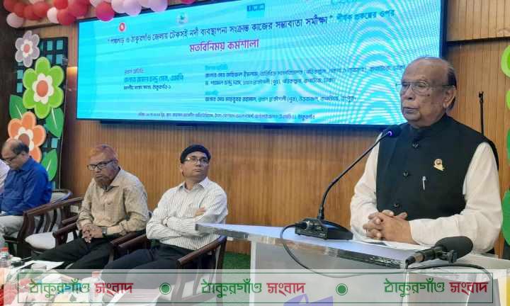 মোঃ মজিবর রহমান শেখ, ঠাকুরগাঁও জেলা প্রতিনিধি,,ঠাকুরগাঁওয়ে “পঞ্চগড় ও ঠাকুরগাঁও জেলার টেকসই নদী ব্যবস্থাপনা সংক্রান্ত কাজের সম্ভাব্যতা সমীক্ষা শীর্ষক প্রকল্পের ওপর মতবিনিময় সভা অনুষ্ঠিত হয়। ১৮ মে শনিবার উন্নয়ন সংস্থা ইএসডিও’র জয়নাল আবেদীন অডিটরিয়ামে এ মতবিনিময় সভাটির আয়োজন করা হয়। বাংলাদেশ পানি উন্নয়ন বোর্ডের প্রকল্প পরিচালক ও নির্বাহী প্রকৌশলী (পুর) এর আয়োজনে অনুষ্ঠিত সভায় রংপুর বাপাউবো উত্তরাঞ্চলের প্রধান প্রকৌশলী (পুর) মো: মাহবুবর রহমানের সভাপতিত্বে বক্তব্য দেন প্রধান অতিথি আ’লীগের উপদেষ্টা মন্ডলীর সদস্য, ঠাকুরগাঁও-১ আসনের সংসদ সদস্য ও পানি সম্পদ মন্ত্রনালয়ের স্থায়ী কমিটির সভাপতি রমেশ চন্দ্র সেন, বিশেষ অতিথি ঢাকা বাপাউবো (পরিকল্পনা, নকশা ও গবেষণা) অতিরিক্ত মহাপরিচালক মো: জহিরুল ইসলাম, ঢাকা বাপাউবোর পরিকল্পনা প্রধান প্রকৌশলী (পুর) ড. শ্যামল চন্দ্র দাস, বাংলাদেশ পানি উন্নয়ন বোর্ডের প্রকল্প পরিচালক ও নির্বাহী প্রকৌশলী (পুর) ফারজানা আহমেদ প্রমুখ। মতবিনিময় সভায় পঞ্চগড় ও ঠাকুরগাঁও জেলার নদী ব্যবস্থাপনার সাথে জড়িত মানুষজন উপস্থিত ছিলেন। এর আগে সংশ্লিষ্ট বিষয়ের উপরে ভিডিওচিত্র প্রদর্শন করা হয়।
