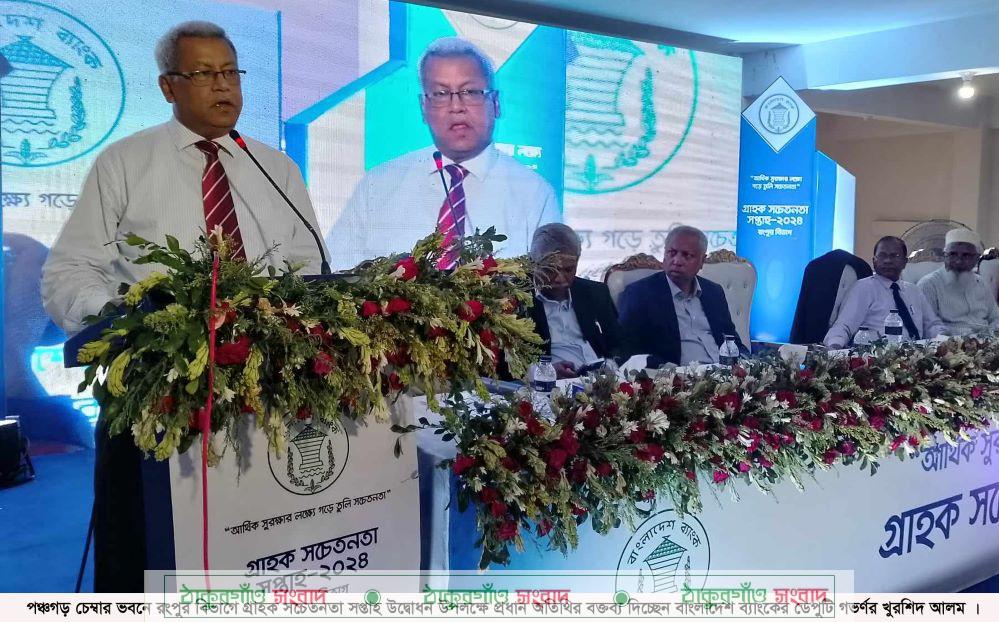 তিনি গতকাল শনিবার দুপুরে পঞ্চগড় চেম্বার মিলনায়তনে গ্রাহকদের ব্যাংকিং বিষয়ে সচেতনতা বৃদ্ধির লক্ষ্যে রংপুর বিভাগে গ্রাহক সচেতনতা সপ্তাহ-২০২৪ এর উদ্বোধনী অনুষ্ঠানে প্রধান অতিথির বক্তব্যে এসব কথা বলেন।