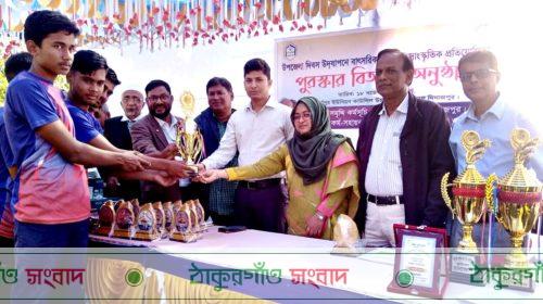বোদা(পঞ্চগড়)প্রতিনিধি\ জাতির পিতা বঙ্গবন্ধু শেখ মুজিবুর রহমান জাতীয় গোল্ডকাপ ফুটবল টুর্ণামেন্ট(অনুর্ধ্ব ১৭) বোদা উপজেলা পর্যায়ের ফাইনাল খেলা শুক্রবার বিকালে বোদা সরকারি পাইলট মডেল স্কুল এন্ড কলেজ মাঠে অনুষ্ঠিত হয়।বোদা উপজেলা প্রশাসন এই খেলার আয়োজন করে। খেলায় বোদা পৌরসভা ফুটবল দল ২-০ গোলে ঝলইশালশিরি ইউনিয়ন ফুটবল দলকে পরাজিত করে বিজয়ী হন। প্রচন্ড বৃষ্টি উপেক্ষা করে শত শত দর্শক মাঠের চারপাশে দাড়িয়ে খেলা উপভোগ করেন। খেলা শেষে উভয় দলের মাঝে পুরস্কার বিতরণ করা হয়। খেলা পরিচালনা কমিটির সভাপতি ও বোদা উপজেলা নির্বাহী অফিসার উভয় দলের মাঝে পুরস্কার বিতরণ করেন। এসময় বোদা থানার ভারপ্রাপ্ত কর্মকর্তা মো.মোজাম্মেল হক,বোদা সরকারি পাইলট মডেল স্কুল এন্ড কলেজের প্রধান শিক্ষক জামিউল হক,বোদা পাইলট গালর্স স্কুল এন্ড কলেজের প্রধান শিক্ষক রবিউল আলম সাবুল,খেলা পরিচালনা কমিটির সেক্রেটারি,উপজেলা ক্রীড়া সংস্থার সম্পাদক মনিরুজ্জামান তানু,বোদা সদর ইউনিয়ন পরিষদ চেয়ারম্যান অখিল চন্দ্র্র ঘোষ শিষা,পৌর কাউন্সিলরগণ ও ঝলইশালশিরি ইউনিয়ন পরিষদের সদস্যগণ উপস্থিত ছিলেন।