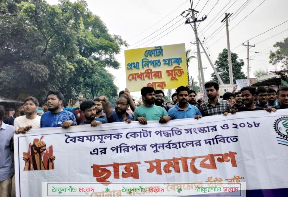 বিক্ষোভ মিছিলে কোটা সংস্কার আন্দোলনকারী শিক্ষার্থীরা বিক্ষোভ মিছিলে ¯েøাগানে ¯েøাগানে মুখরিত করে তোলে এবং এক পর্যায়ে মহাসড়ক অবরোধ করে বিক্ষোভ করে।