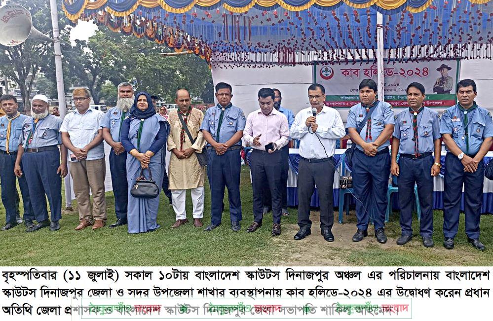 দিনাজপুরে বাংলাদেশ স্কাউটস এর কাব হলিডে-২০২৪ অনুষ্ঠিত হয়েছে। এতে প্রধান অতিথি ছিলেন দিনাজপুরে জেলা প্রশাসক ও বাংলাদেশ স্কাউটস দিনাজপুর জেলা সভাপতি শাকিল আহমেদ।