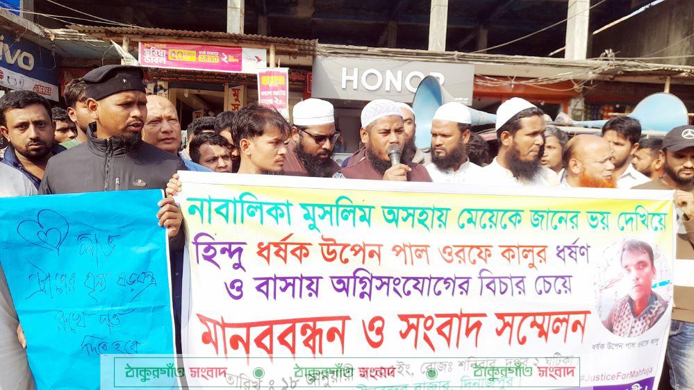 শনিবার দুপুর ২টায় ভুক্তভোগী মুসলিম নারী ও এলাকাবাসীর আয়োজনে উপজেলার নশরতপুর ইউনিয়নের সুইহারীবাজারে রংপুর-দিনাজপুর মহাসড়কে এ মানববন্ধন ও সংবাদ সম্মেলন অনুষ্ঠিত হয়।