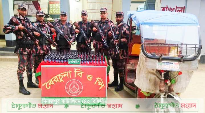 গত রবিবার (২৬ জানুয়ারি) গোপন সংবাদের ভিত্তিতে আনুমানিক সাড়ে ৬ ঘটিকায় ঠাকুরগাঁওয়ের পীরগঞ্জ উপজেলার ১১নং বৈরচুনা ইউনিয়ন মাধবপুর গ্রাম সীমান্ত পিলার হতে প্রায় দুইশ গজ বাংলাদেশের অভন্তরে মাদক বহনকারী ১টি অটোবাইকসহ ২০০ বোতল ফেনসিডিল আটক করেছে দিনাজপুর ব্যাটালিয়ন (বিজিবি-৪২)।