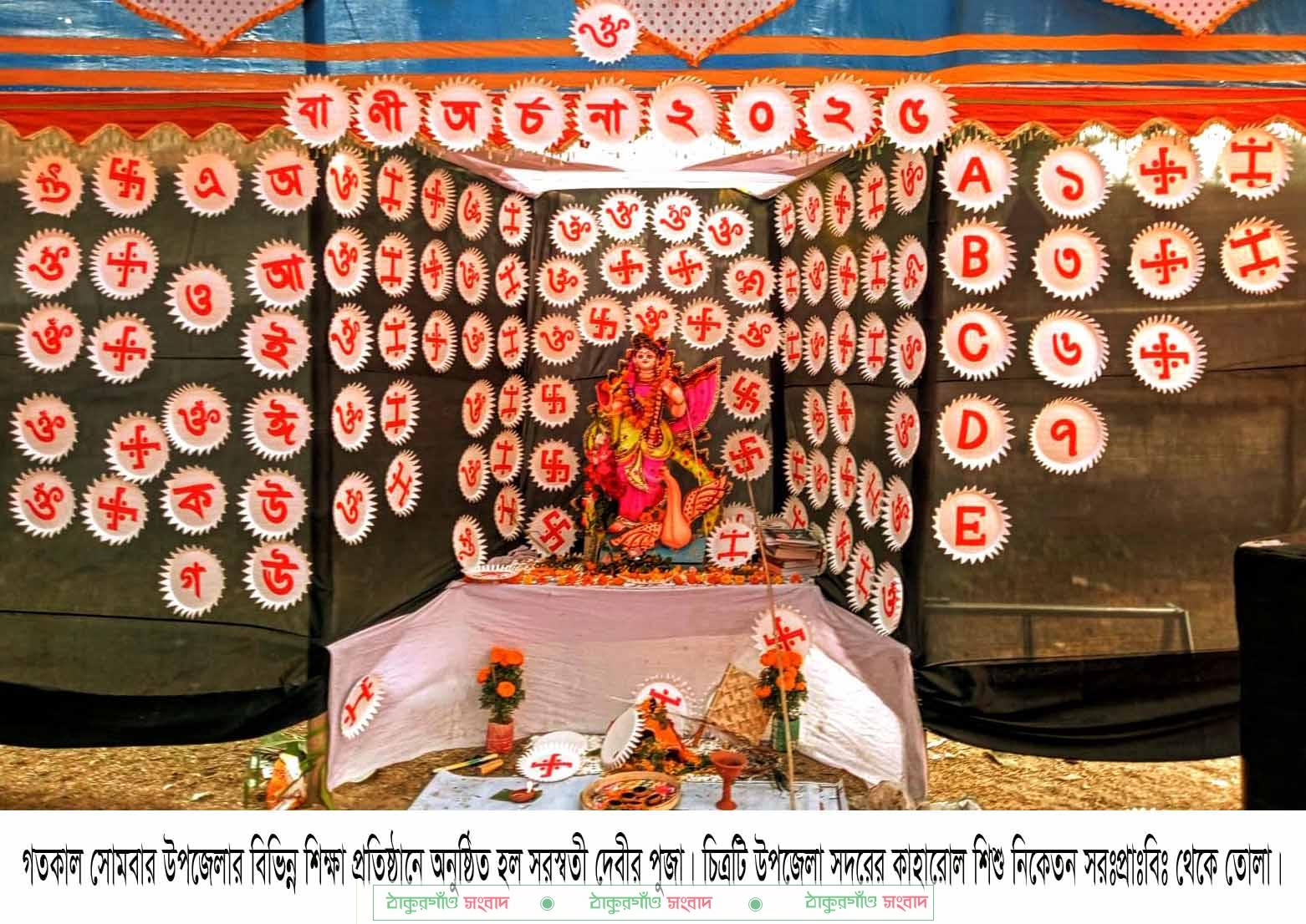 কাহারোল (দিনাজপুর) প্রতিনিধিঃ কাহারোলে বিভিন্ন শিক্ষা প্রতিষ্ঠানে সরস্বতী পুজা অনুষ্ঠিত হয়েছে। দিনাজপুরের কাহারোল উপজেলার বিভিন্ন শিক্ষা প্রতিষ্ঠানগুলোতে সুষ্ঠু-সুন্দর ও উৎসবমুখর পরিবেশে অনুষ্ঠিত হল সরস্বতী পুজা। গতকাল সোমবার উপজেলার বিভিন্ন এলাকা সরেজমিনে ঘুরে দেখা গেছে, উপজেলার ৬ টি ইউনিয়নের বিভিন্ন শিক্ষা প্রতিষ্ঠান গুলোতে প্রতি বছরের ন্যায় এ বছরও ব্যাপক আকারে সরস্বতী পুজার আয়োজন করেন শিক্ষা প্রতিষ্ঠান কর্তৃপক্ষ। পুজার উৎসবে মেতে উঠে শিক্ষা প্রতিষ্ঠানের শিক্ষার্থীরা। দেখা যায়, শিক্ষার্থীরা সরস্বতী পুজার আগের দিন থেকে শুরু করে পুজার দিন পর্যন্ত শিক্ষা প্রতিষ্ঠানগুলোতে সরস্বতী পুজার ধুম পড়ে যায় তাদের মধ্যে। পুজা উপলক্ষে শিক্ষার্থীরা ধুর্তি পাঞ্জাবী, শাড়ি ও রং বে-রঙ্গের বাহারী পোশাক গায়ে দিয়ে এ উৎসব পালন করতে দেখা যায়। এদিকে সরস্বতী পুজা উপলক্ষে উপজেলা নির্বাহী অফিসার ও উপজেলা পরিষদের প্রশাসক মোঃ আমিনুল ইসলাম উপজেলার বিভিন্ন শিক্ষা প্রতিষ্ঠানগুলোতে অনুষ্ঠিত সরস্বতী পুজা পরিদর্শন করেছেন।