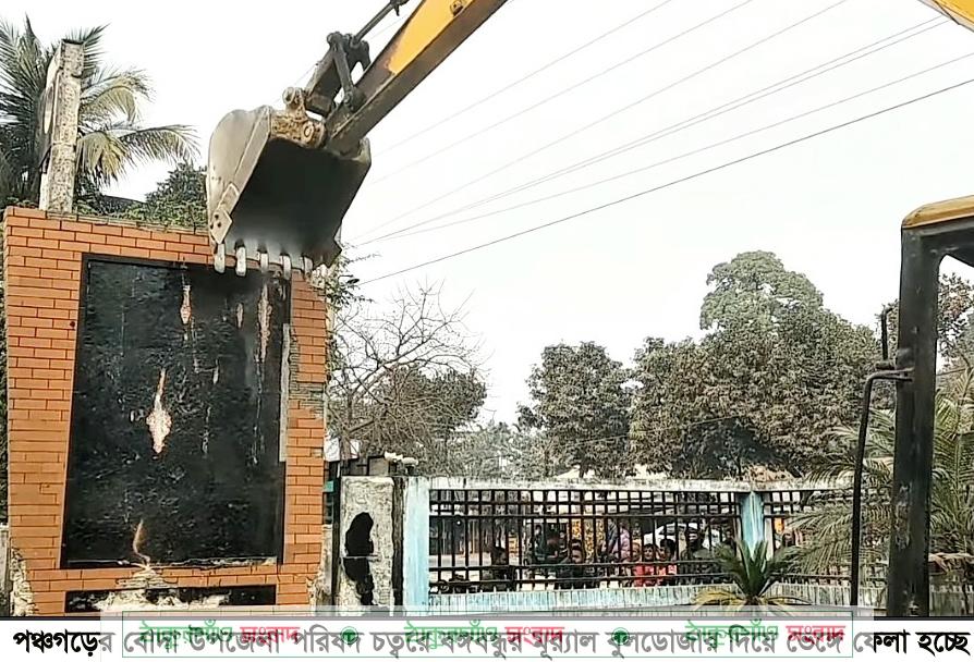 এদিকে বৃহস্পতিবার দুপুরে জেলার বোদা উপজেলা পরিষদ চত্বরে অবস্থিত শেখ মুজিবুর রহমানের মূর্যাল বুলডোজার দিয়ে গুড়িয়ে দিয়েছে বিক্ষুদ্ধ ছাত্রজনতা। এছাড়া উপজেলা শহরের মুক্তিযোদ্ধা কমপ্লেক্সের সামনে সড়কের পাশে থাকা মূর্যাল বুলডোজার দিয়ে গুড়িয়ে দেয়া হয়। জেলার আটোয়ারী উপজেলার ধামোর ইউনিয়নে বঙ্গবন্ধু ডাংগীর হাট সরকারি কলেজের পঞ্চগড়-আটোয়ারী সড়কের পাশে থাকা কলেজ গেটের নাম ফলকের বঙ্গবন্ধু অংশটি ভেঙ্গে ডাংগীর হাট সরকারি কলেজ অংশটি রাখা হয়। এ সময় গেটের পাশে থাকা বঙ্গবন্ধুর মূর্যালটিও ভেঙ্গে ফেলে বিক্ষুদ্ধ ছাত্রজনতা। পরে তারা কলেজের একাডেমিক ভবনের মুল গেটের উপরে নামফলকের অংশে বঙ্গবন্ধু অংশটি ভেঙ্গে ফেলে।