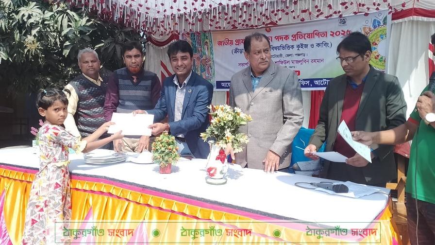 পঞ্চগড়ের আটোয়ারীতে দুই দিনব্যাপী উপজেলা পর্যায়ে জাতীয় প্রাথমিক শিক্ষা পদক প্রতিযোগিতা-২০২৫ অনুষ্ঠিত হয়েছে। উপজেলা প্রাথমিক শিক্ষা অফিসের আয়োজনে আটোয়ারী মডেল সরকারি প্রাথমিক বিদ্যালয় মাঠে ১৭ ও ১৮ ফেব্রæয়ারি প্রতিযোগিতায় ক্রীড়া, সাংস্কৃতিক, বিষয়ভিত্তিক কুইজ ও কাবিং এর মোট ৫৪ টি ইভেন্টে অংশ নেয় শিক্ষার্থীরা। প্রথম দিনে এ প্রতিযোগিতার শুভ উদ্বোধন করেন সভাপতি ও উপজেলা নির্বাহী অফিসার মোঃ শাফিউল মাজলুবিন রহমান। দুই দিনব্যাপি সকল ইভেন্টের প্রতিযোগিতা শেষে মঙ্গলবার বিজয়ীদের মাঝে আনুষ্ঠানিকভাবে সনদপত্রসহ পুরস্কার বিতরণ করা হয়। এতে সভাপতিত্ব করেন অনুষ্ঠানের সভাপতি ও উপজেলা নির্বাহী অফিসার মোঃ শাফিউল মাজলুবিন রহমান। এসময় উপস্থিত ছিলেন, উপজেলা শিক্ষা অফিসার মোঃ মাসুদ হাসান, সহকারী শিক্ষা অফিসার মোঃ নজরুল ইসলাম, ইউআরসি ইন্সট্রাক্টর মোঃ মাসুম বিল্লাহ, উপজেলা প্রাথমিক শিক্ষক সমিতির সভাপতি রেজা আল মামুন, সাধারণ সম্পাদক বাহারাম সিদ্দিকী, উপজেলা প্রেসক্লাবের সভাপতি মোঃ ইউসুফ আলী, বিভিন্ন শিক্ষা প্রতিষ্ঠানের শিক্ষক-শিক্ষার্থী প্রমুখ। পুরস্কার বিতরণের আগে সভাপতির বক্তব্যে ইউএনও বলেন, শিশুদের শারীরিক ও মানসিক বিকাশে পড়াশোনার পাশাপাশি খেলাধূলার গুরুত্ব অপরিসীম। শিক্ষক ও অভিভাবকরা যতœশীল হলে আজকের শিশু শিক্ষার্থীরা আগামীর জন্য অপার সম্ভাবনাময় মানবসম্পদ হিসেবে গড়ে উঠবে।