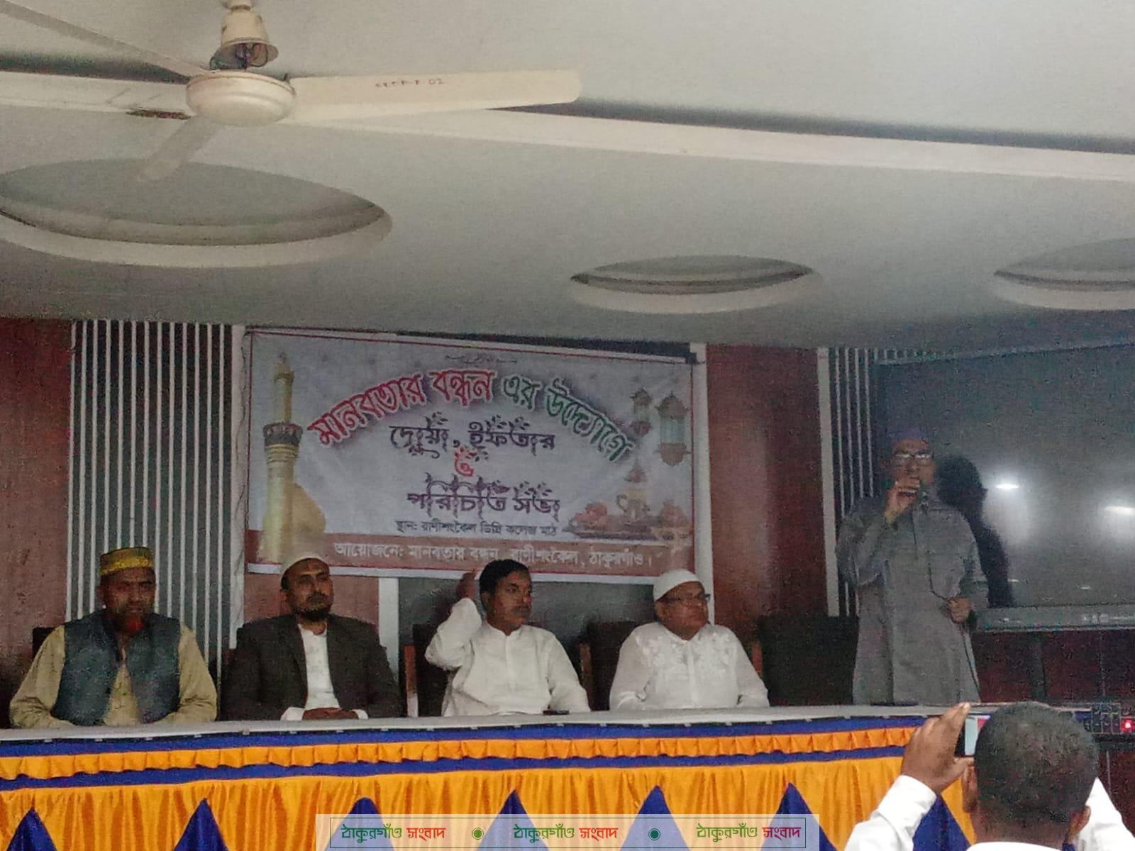 রাণীশংকৈল(ঠাকুরগাঁও)প্রতিনিধি: রাণীশংকৈলে মানবতার বন্ধন কর্তৃক আয়োজনে ১৩ই মার্চ বৃহস্পতিবার ডিগ্রী কলেজ হল রুমে রেজাউল হক রাজার সভাপতিত্বে ইফতার মাহফিলে অনুষ্ঠিত হয়েছে। এ সময় প্রধান অতিথি হিসেবে বক্তব্য রাখেন-বিএনপি’র পৌর সভাপতি অধ্যাপক শাহজাহান আলী, সাবেক মেয়র মোখলেসুর রহমান মানবতার বন্ধন এর উপদেষ্টা এস এম রবিউল ইসলাম সবুজ, আহম্মদ হোসেন বিপ্লব, শ্রমিক কল্যান ফেডারেশন জেলা সভাপতি মতিউর রহমান,জামায়াতের পৌর আমির আব্দুল মাতিন বিশ্বাস, বিএনপি’র সাধারণ সম্পাদক মহসিন আলী, যুব বিভাগ সভাপতি মোকাররম হোসাইন,সাবেক কমিশনার রুহুল আমিন, প্রমুখ অনুষ্ঠান সঞ্চালনায় শামসুদ্দিন ইসলাম সাগর মানবতার বন্ধনে ইফতার মাহফিলে দোয়া পরিচালনা করেন মাওলানা জিয়াউর রহমান জিয়া, এছাড়াও কমিটির সদস্য ,আশরাফুল ইসলাম রুবেল, তাহারুল ইসলাম,এজাব উদ্দিন,সবুজ ইসলাম, রমজান আলী কাওকাব হোসেন বাদল,রায়হান কবির, উজ্জল, রাধন, রবিউল প্রমূখ ইফতার মাহফিলে উপস্থিত ছিলেন।